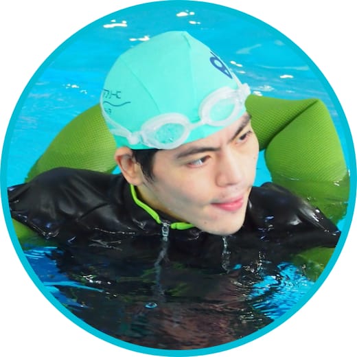 2歳から始めました。視覚に障害がありますが、家族以外の誰かと過ごす姿を見て水泳の上達以上に人との関わりが良い経験となってます。生後半年からプールに入っています。プールはとても大好きな場所です。自分1人では出来ない経験をボランティアさんと一緒にたくさん重ねて想像以上の可能性を広げられる場所になっていけたらと思っています。(母より)