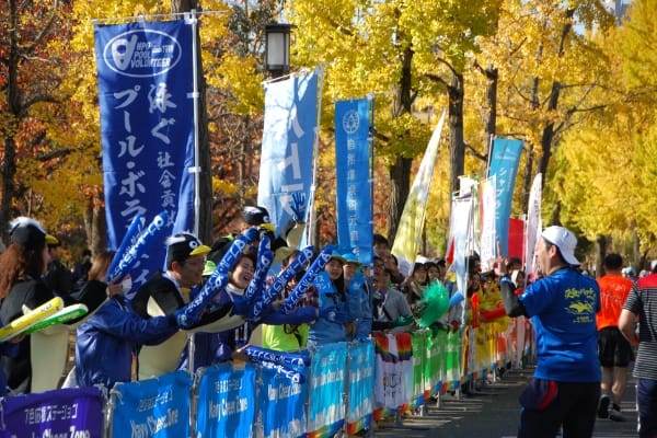 賑やかな沿道の声援も大阪マラソンの魅力。